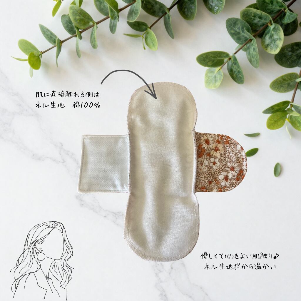 おりもの対策として使える、やさしい肌ざわりの布ライナーです。